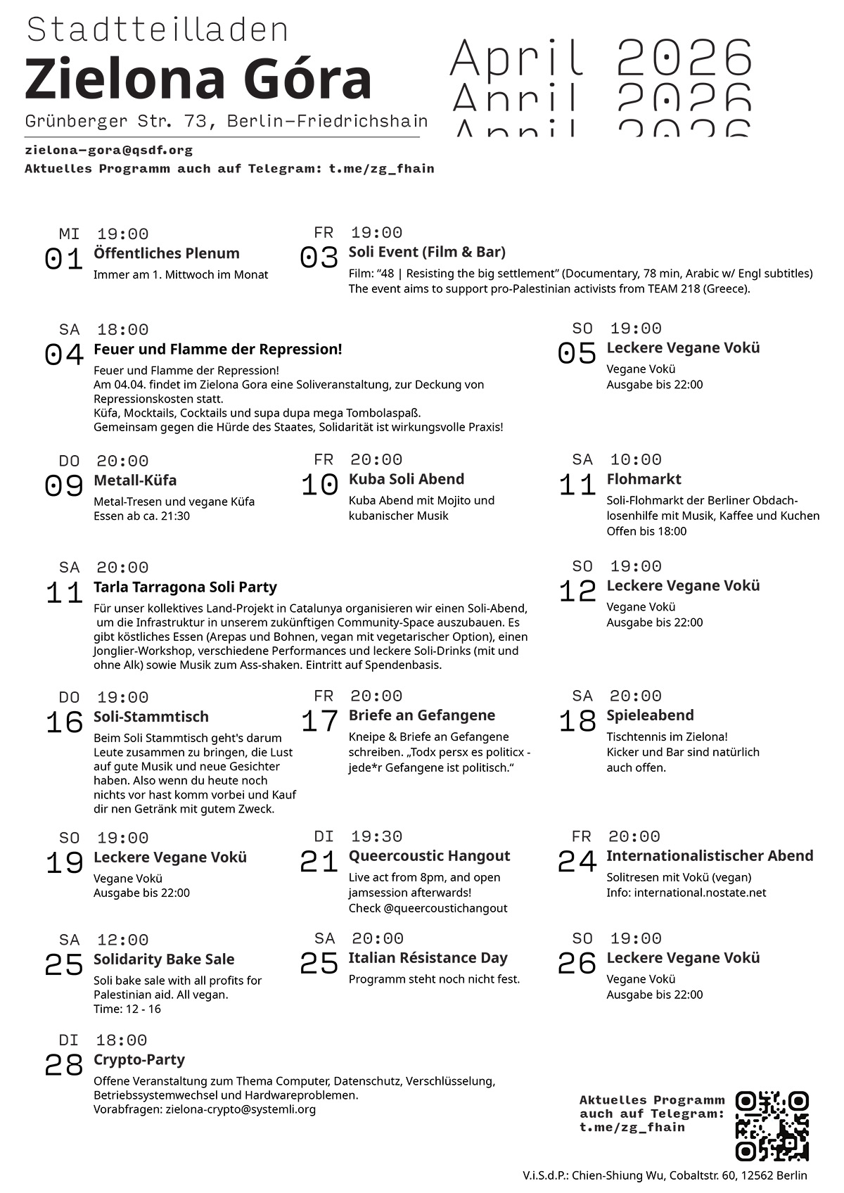 ——— From 1st of April on there will be updates every Wednesday at the Küfa in Rigaer94!